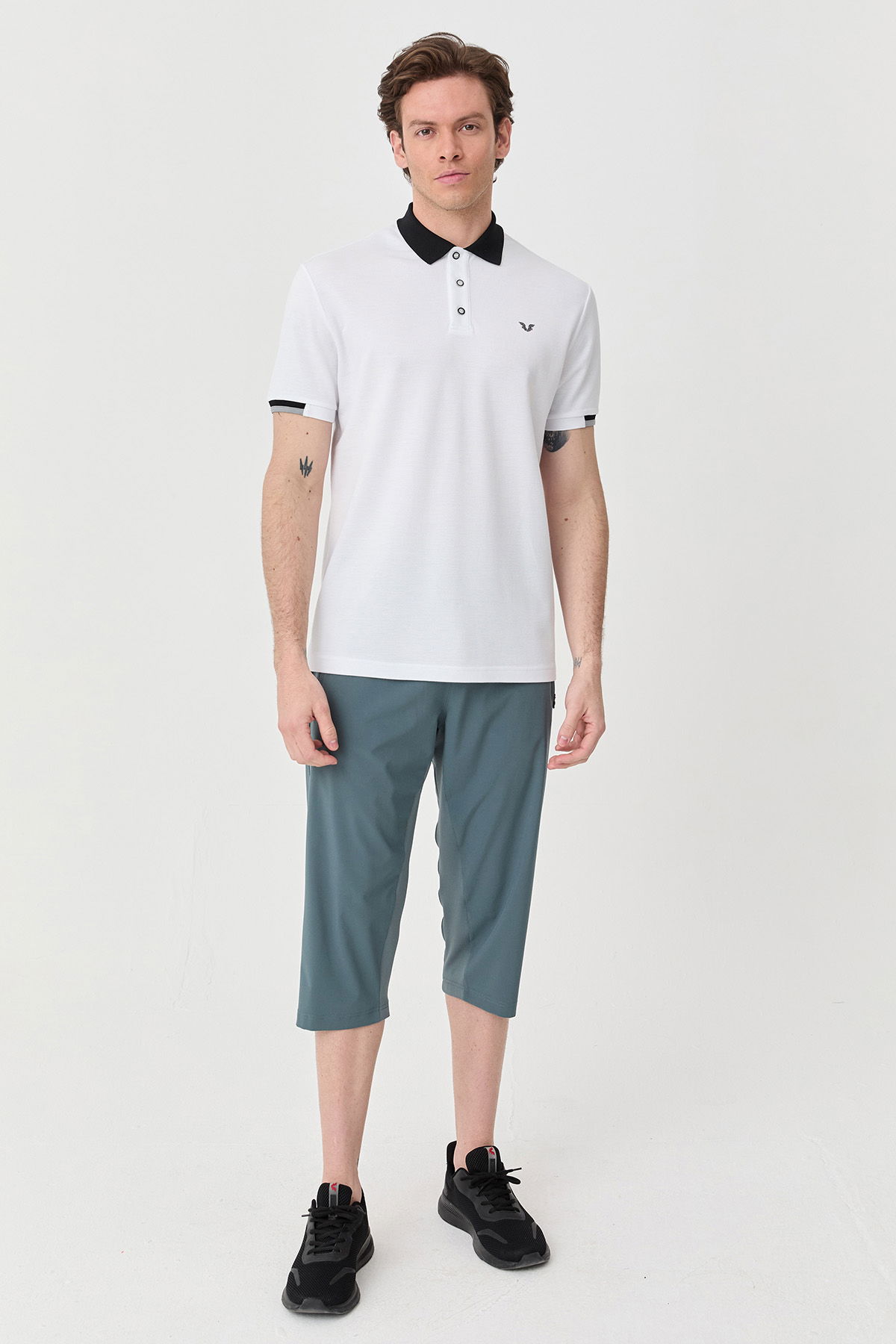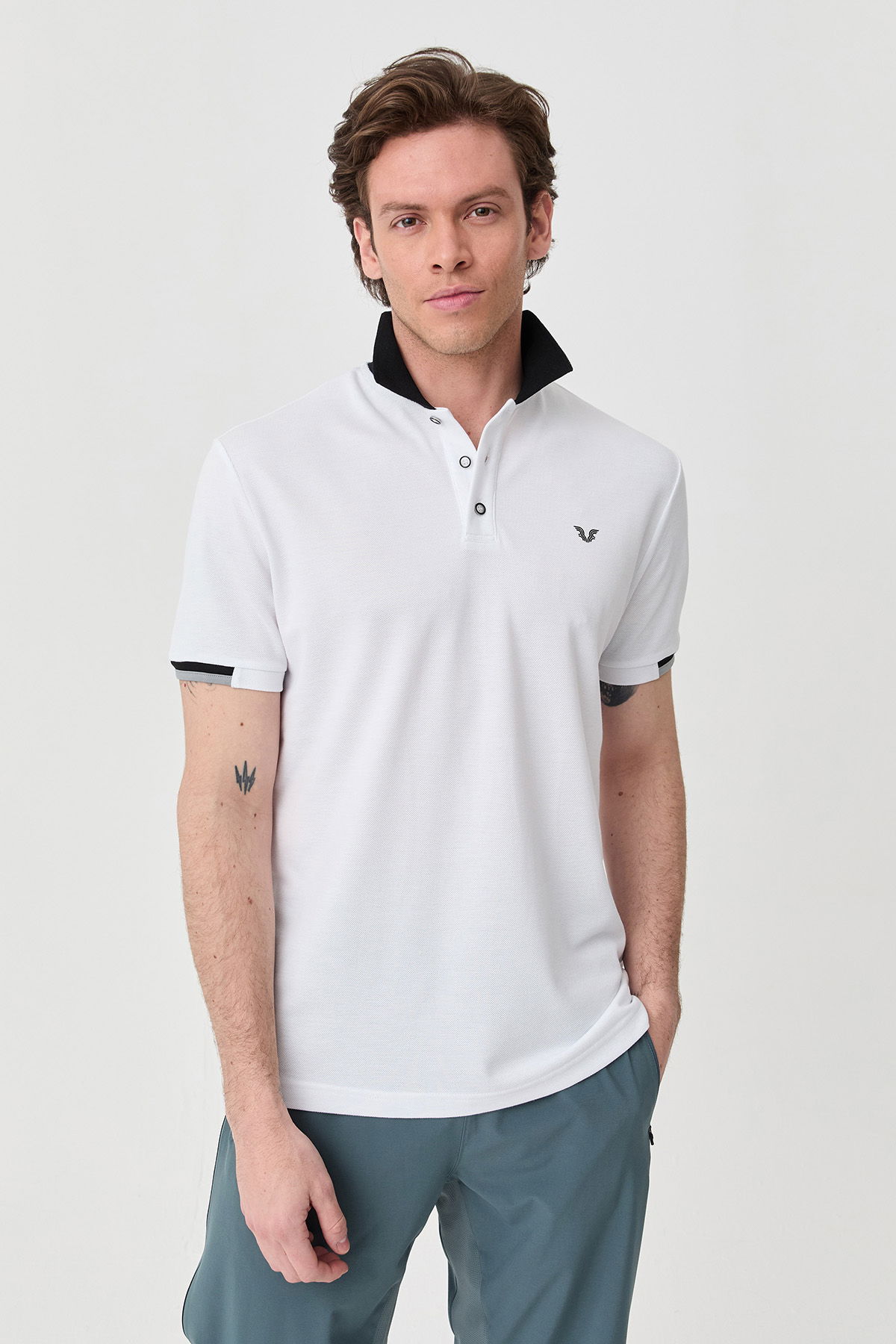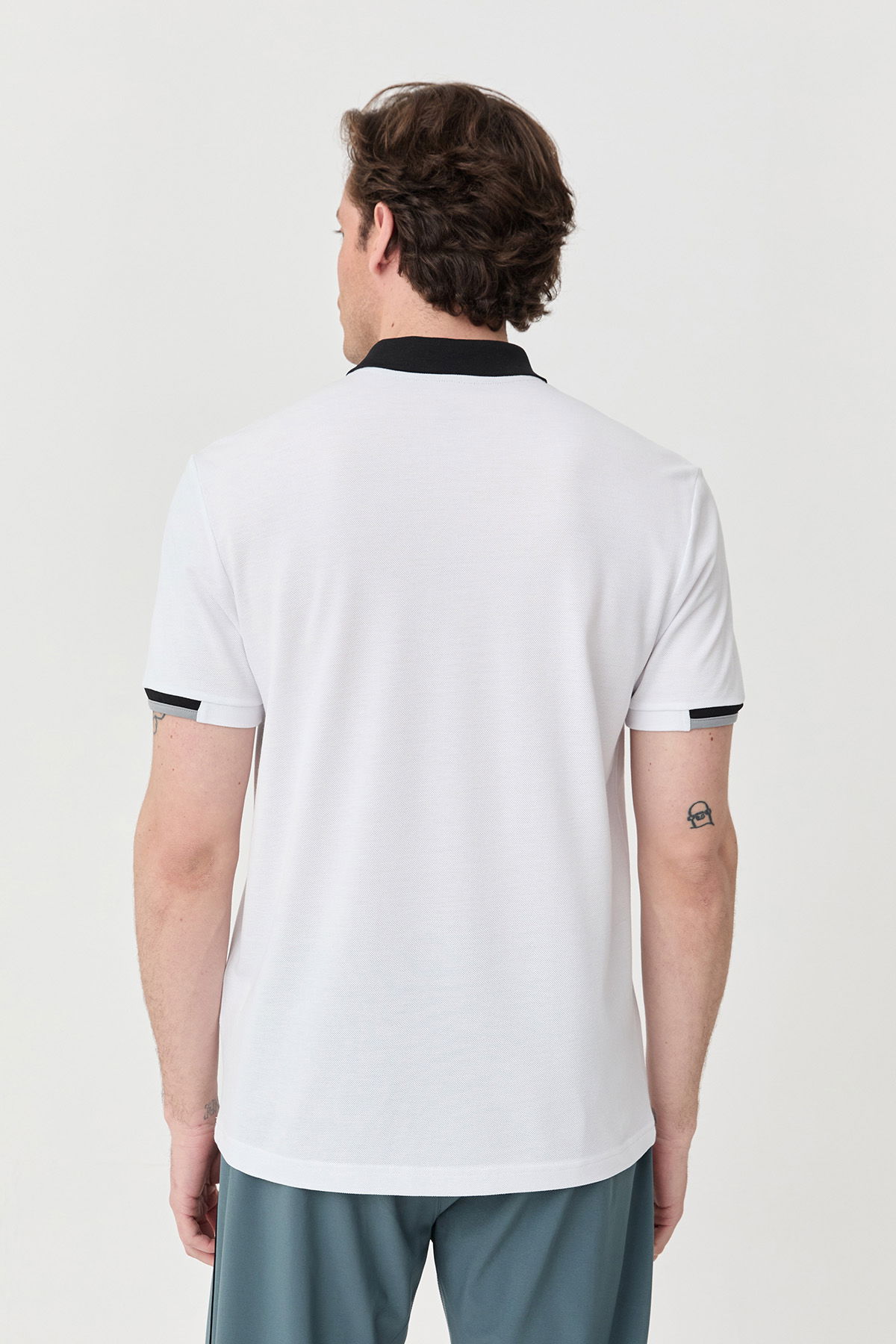 Erkek Beyaz Pamuklu Polo Yakalı Kısa Kollu Tişört | 9710