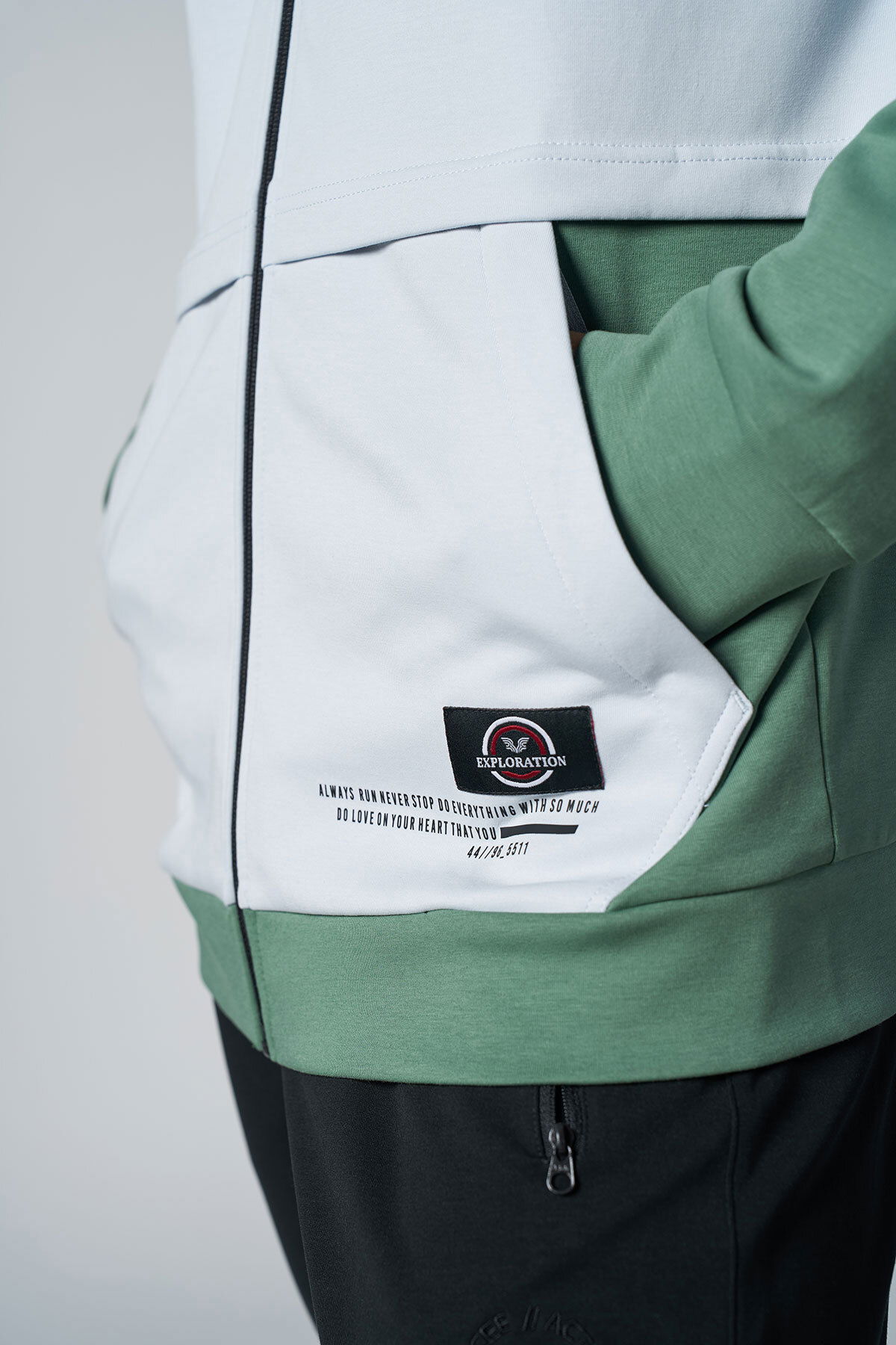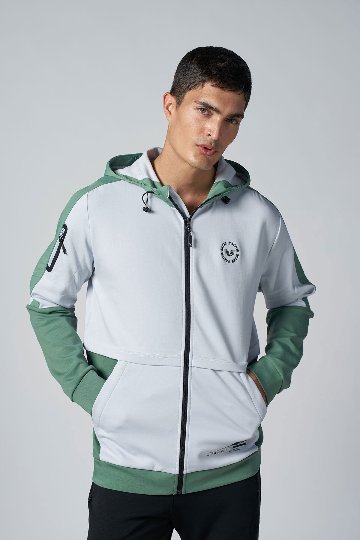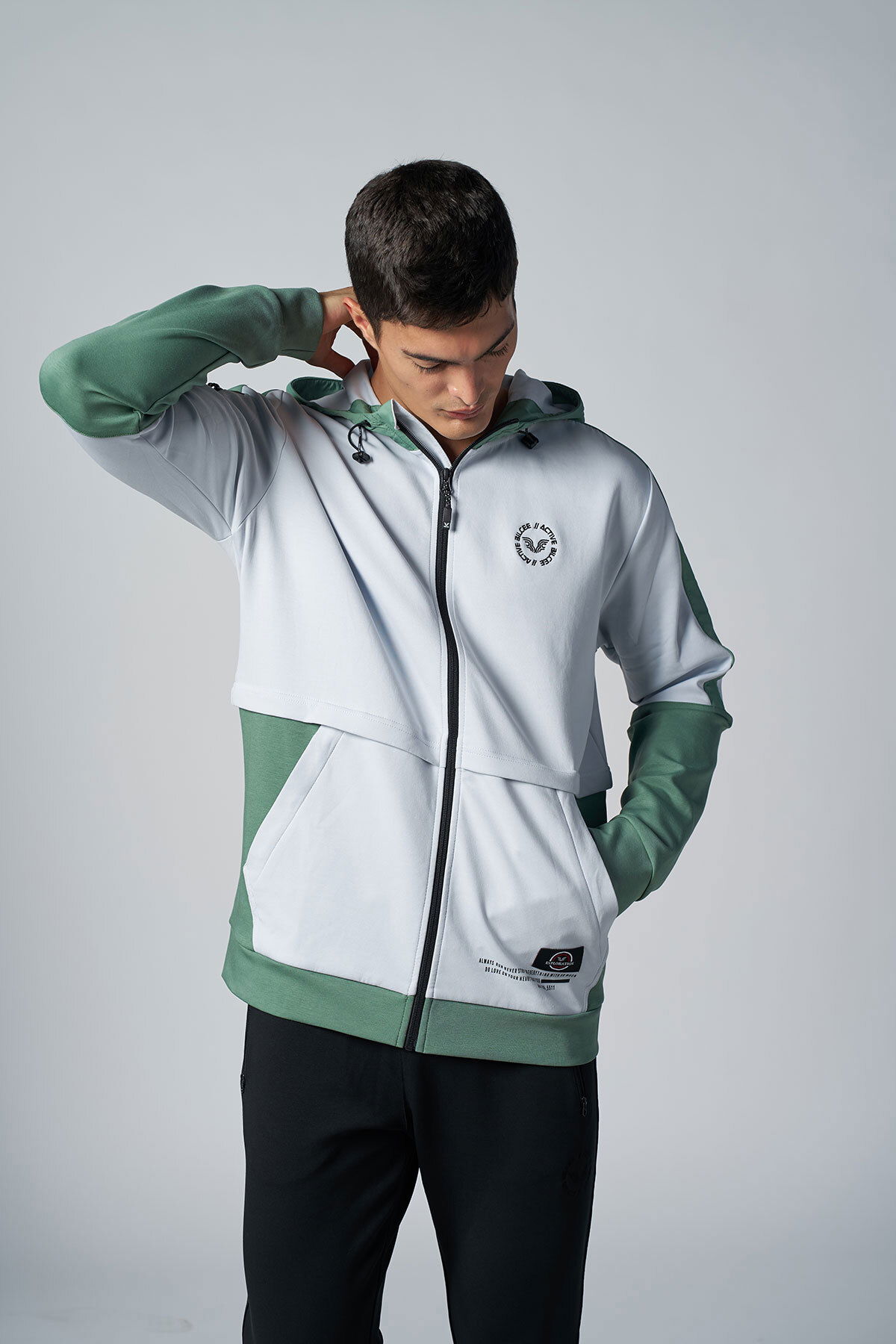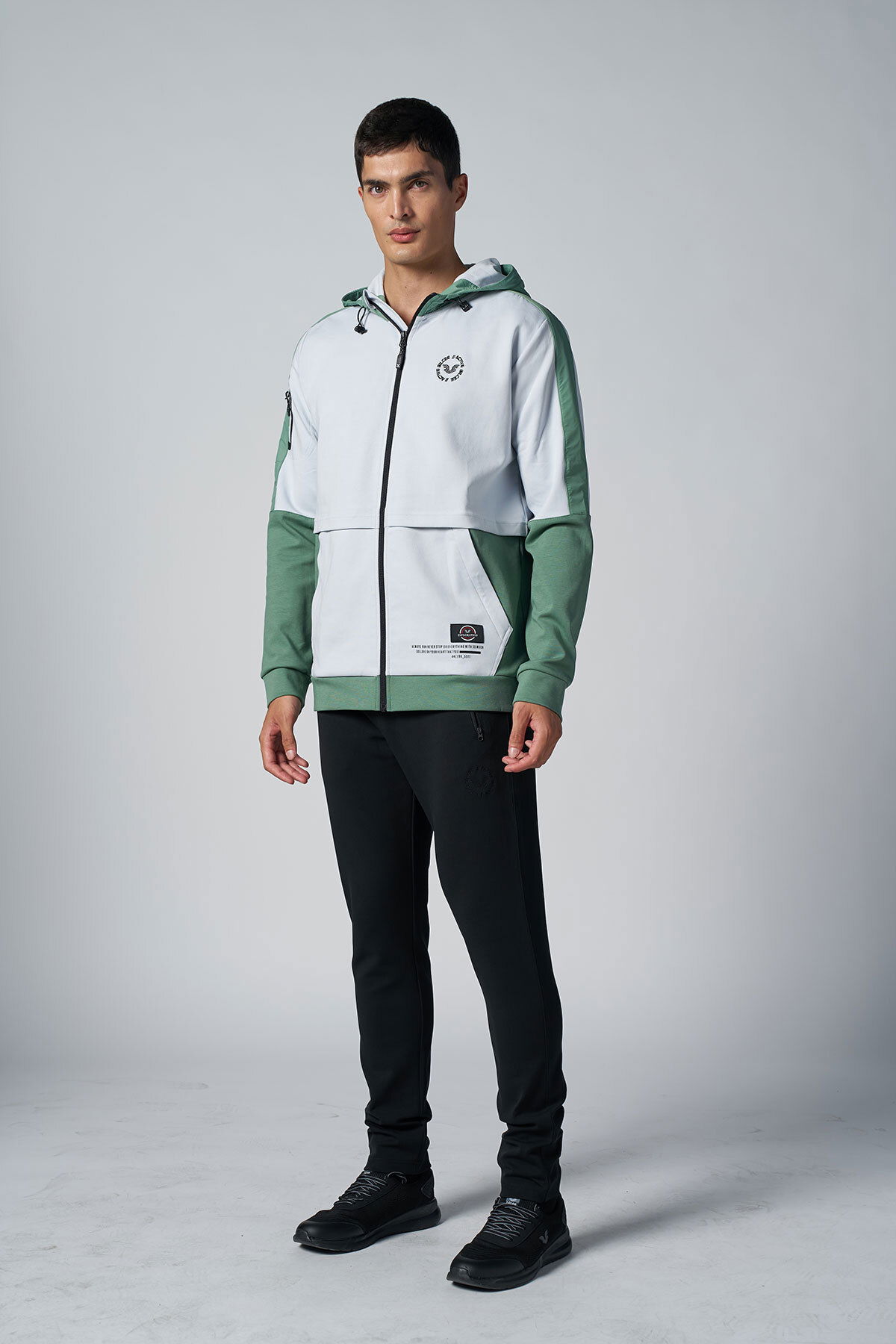 Erkek Yeşil Kapüşonlu Likralı Pamuklu Eşofman Takım | 1525