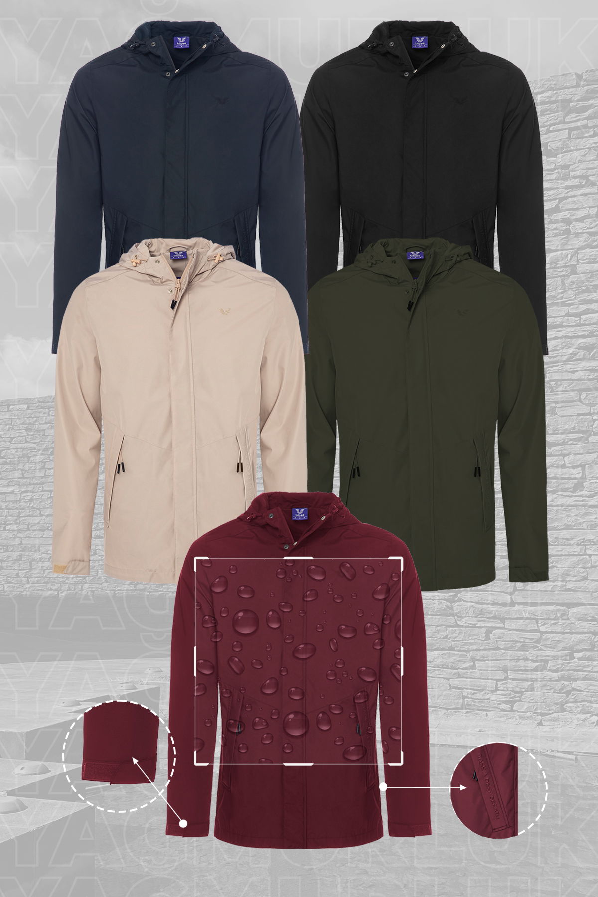 Tasarımcı Notu: Kumaşına yapılan işlem sayesinde, su geçirmezlik özelliğine sahiptir. Kapüşonlu olarak tasarlanan yağmurluk modelimizin ayarlanabilir lastiklerini kendinize uygun olarak ayarlayabilirsiniz. Ön pat altında fermurı ve gizli çıtçıtları bulunan yağmurluk modelimizin, kol ucundaki ayarlanabilir cırt bantları size konfor sağlar. İç bedeni astarlıdır. Modern kesimiyle, trend detaylarıyla, göz dolduracağınız yağmurluk modeliyle, tüm dikkatler üzerinizde olacak.