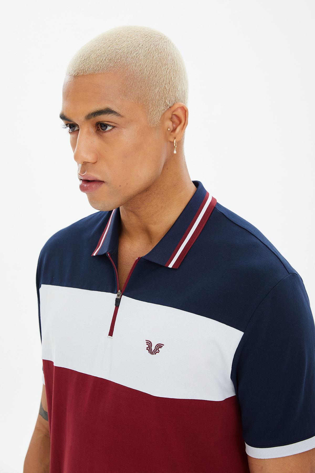 Erkek Bordo Likralı Pamuklu Fermuarlı Polo Tişört 0778