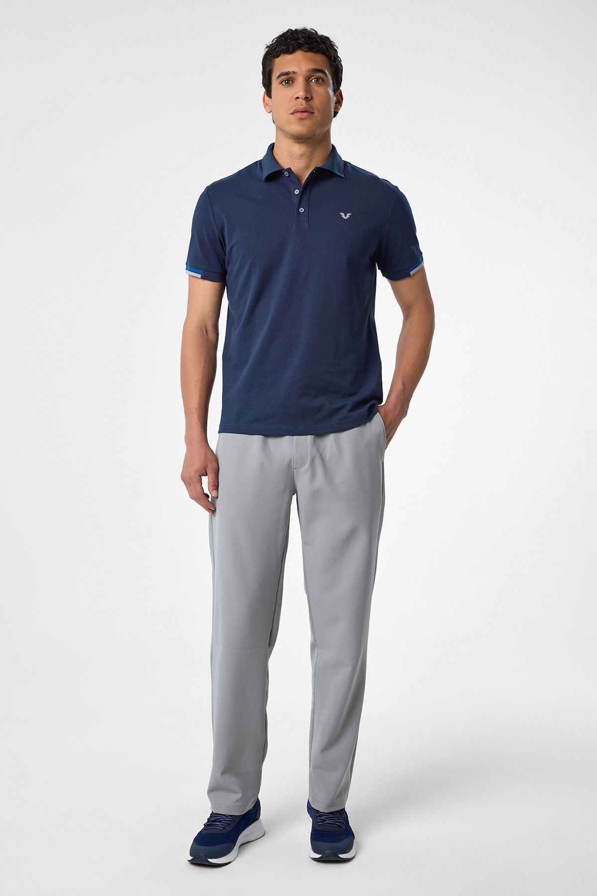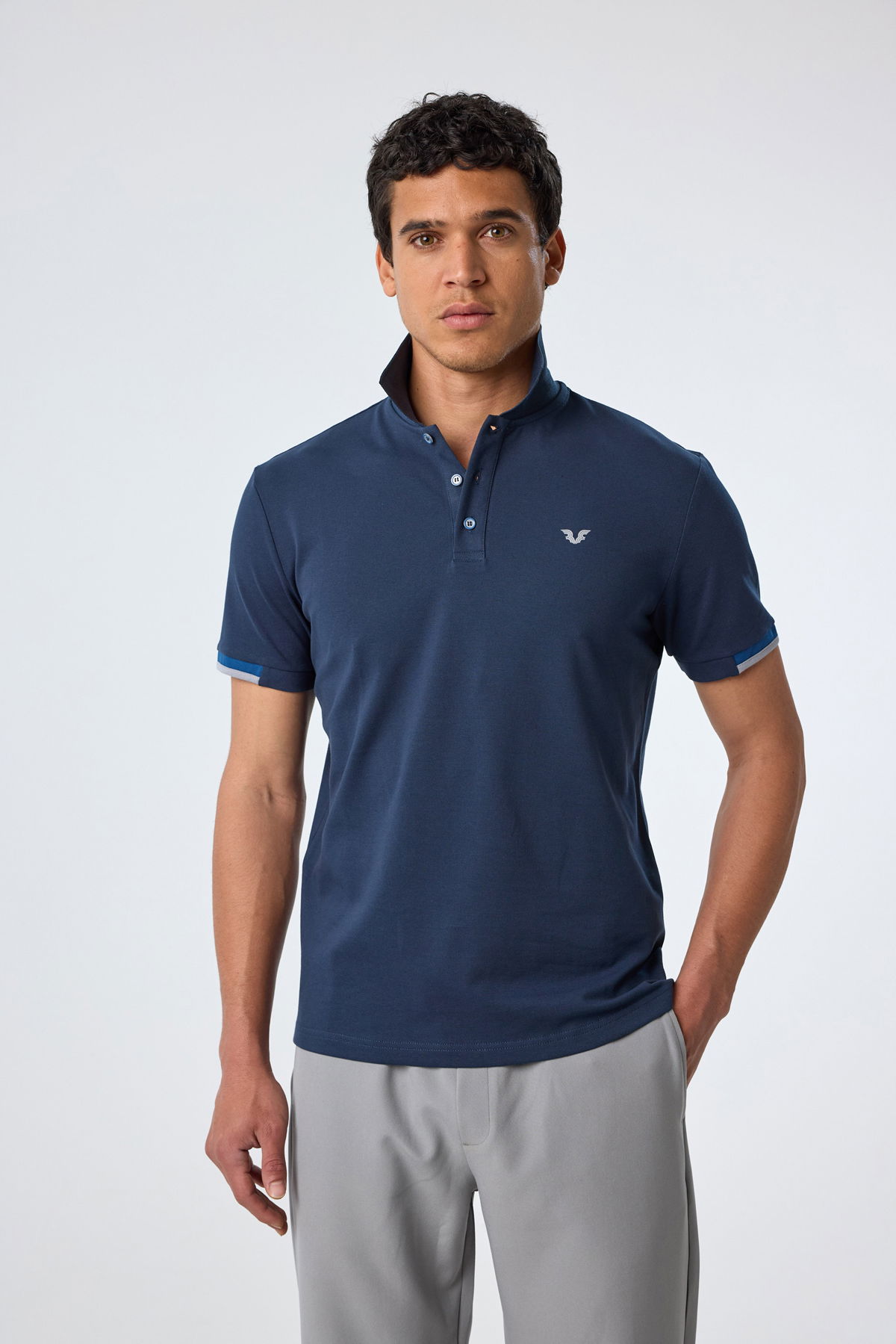 Erkek Lacivert Pamuklu Polo Yakalı Kısa Kollu Tişört | 9710