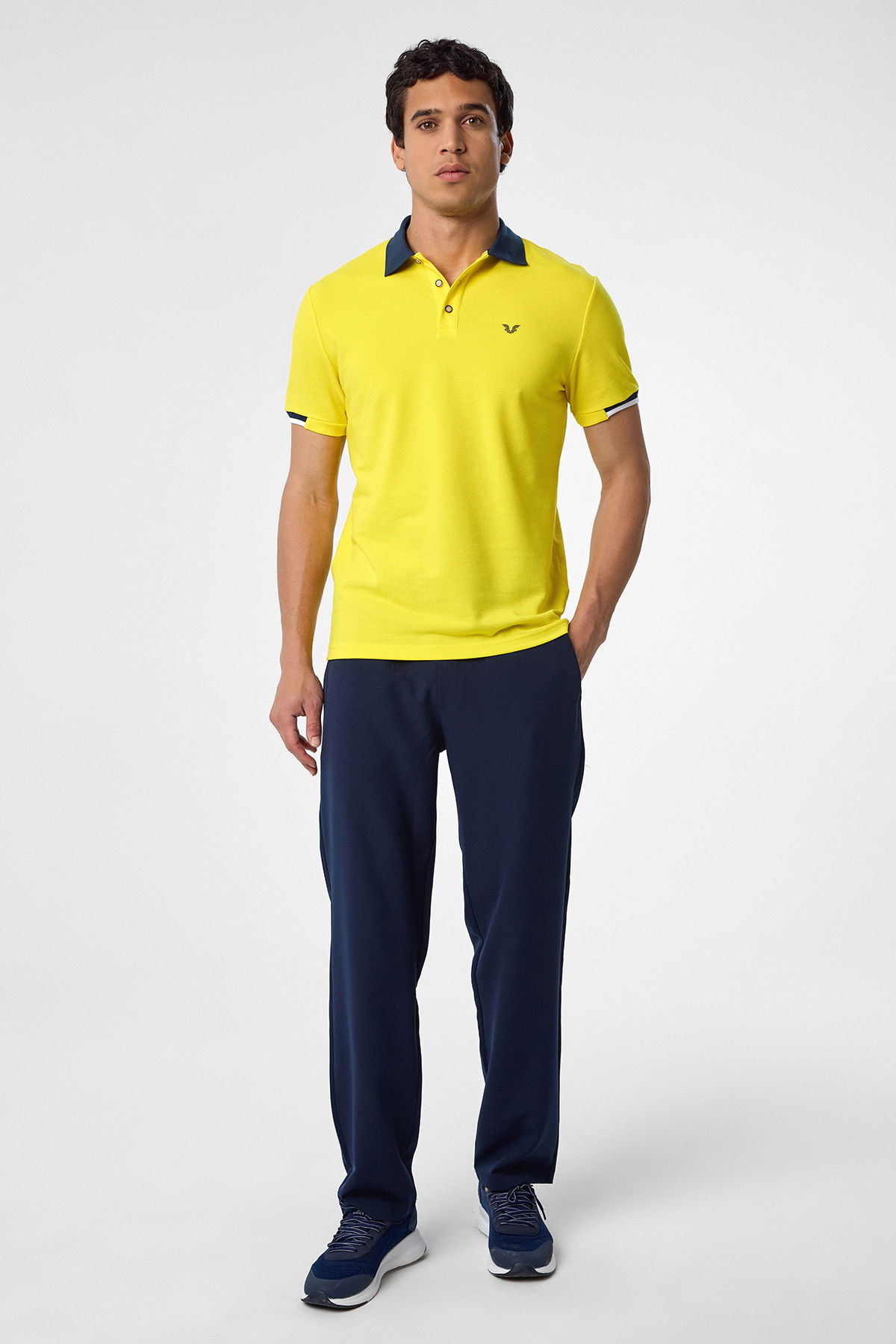 Erkek Sarı Pamuklu Polo Yakalı Kısa Kollu Tişört | 9710
