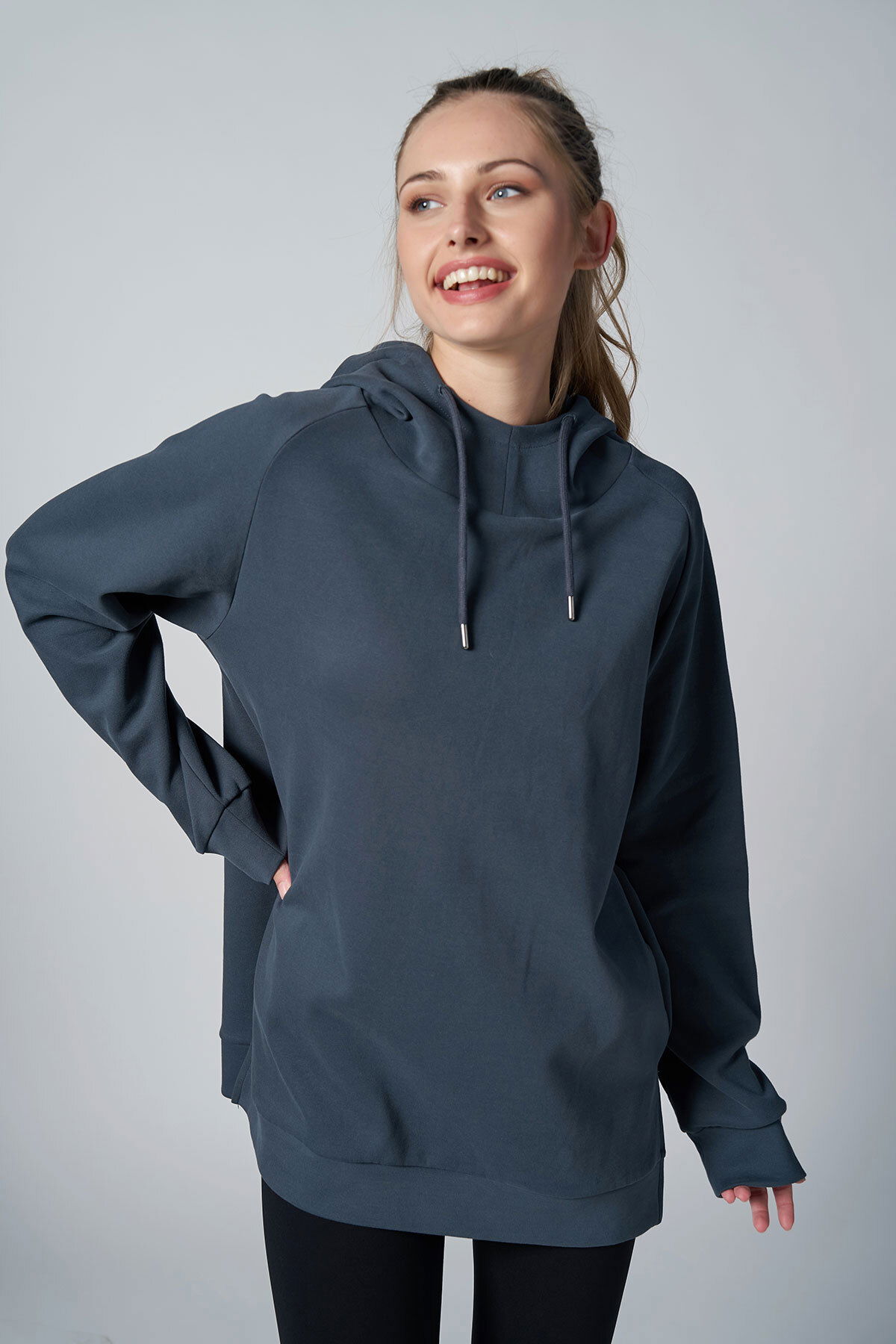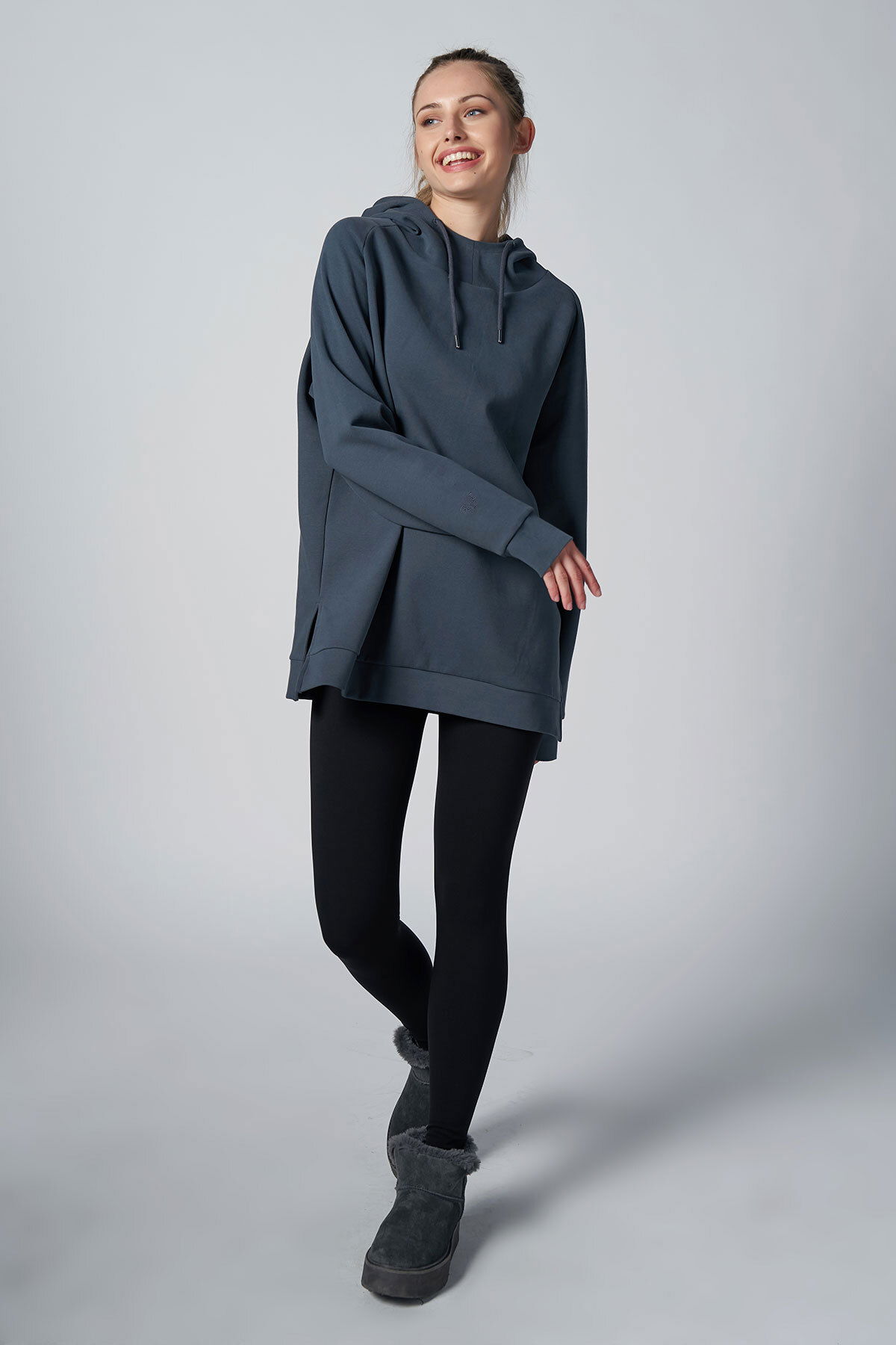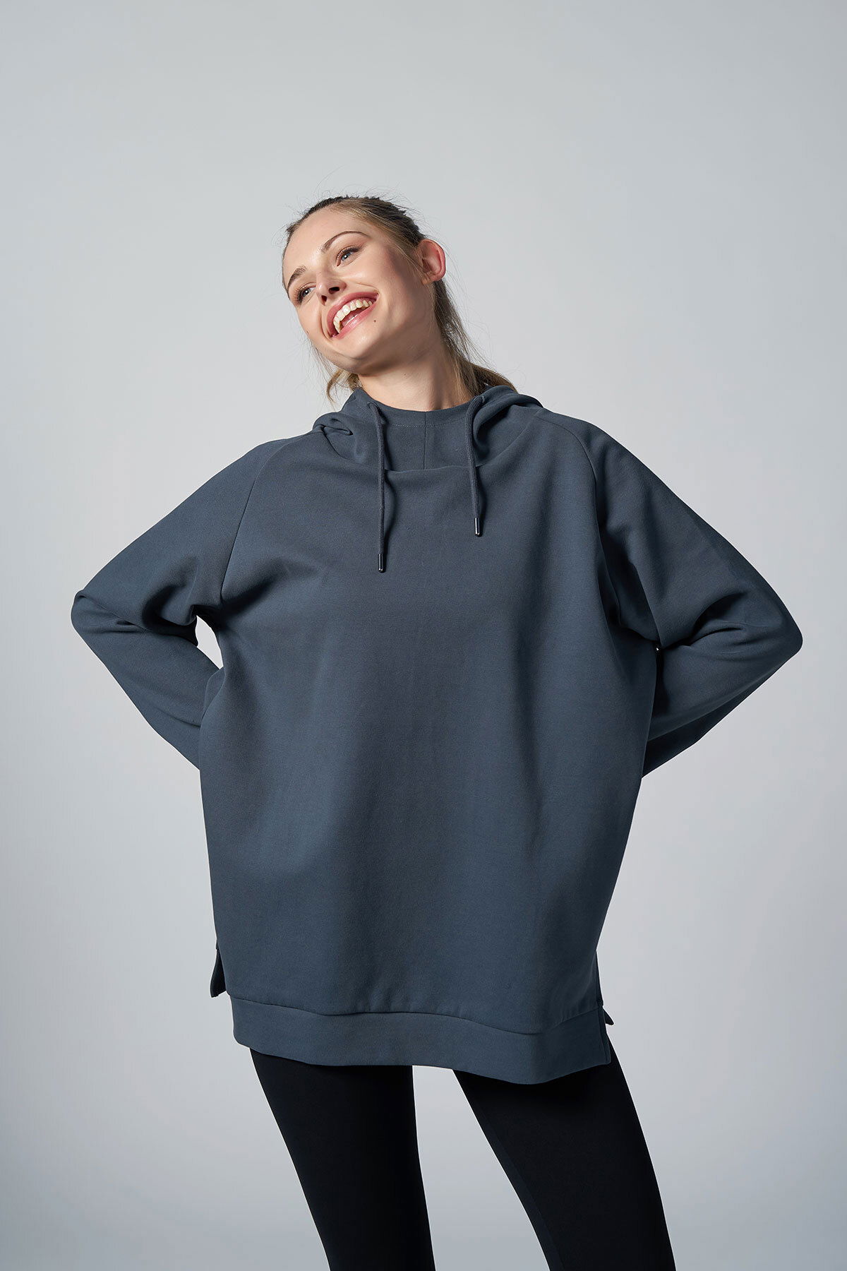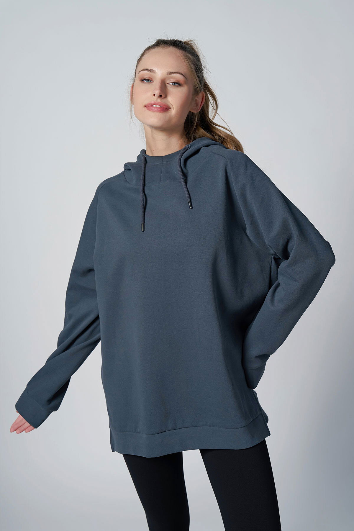 Kadın Füme Fırçalı Yumuşak Dokulu Kapişonlu Uzun Boy Owersize Sweatshırt |4785