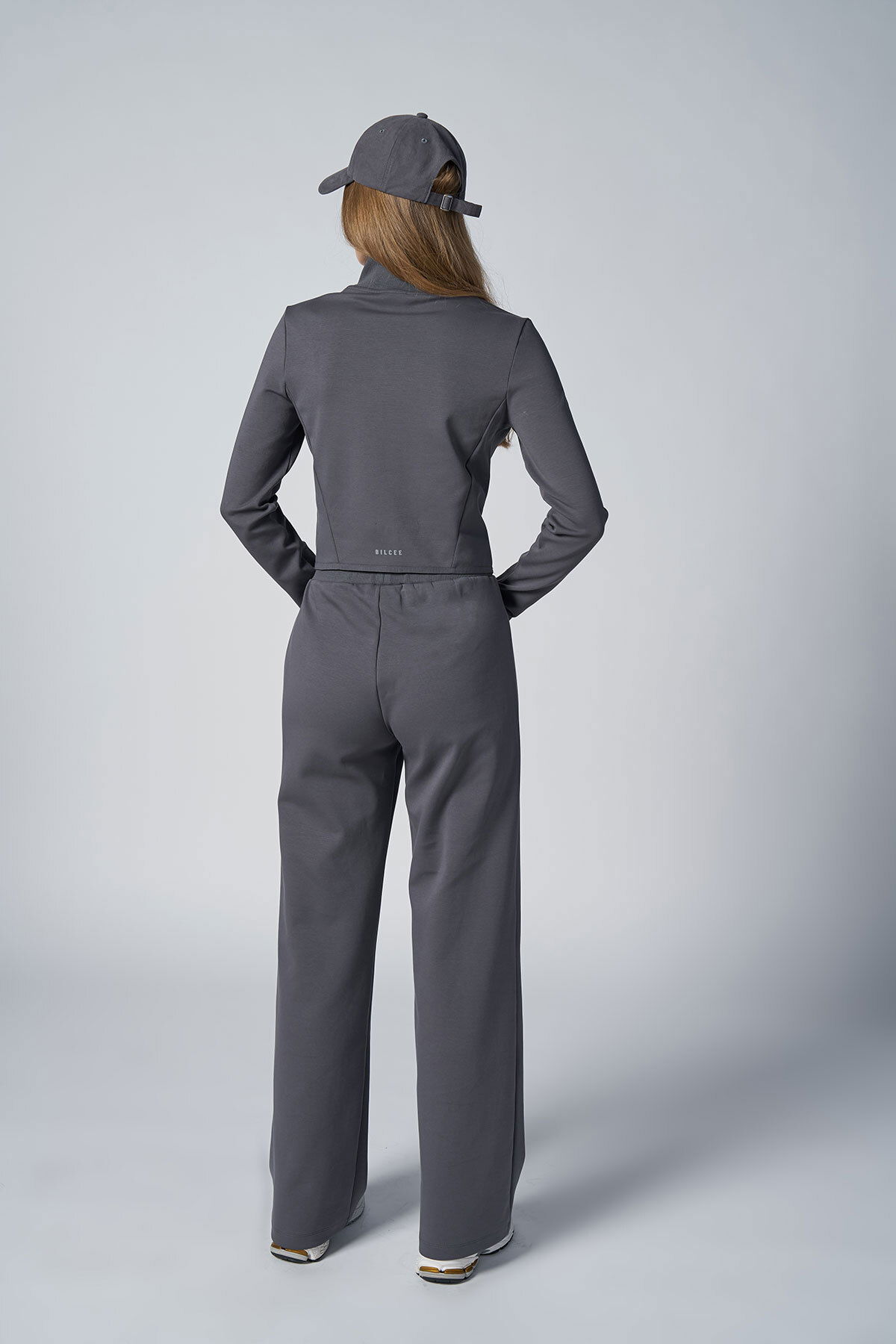 Kadın Gri Crop Ceketli Palazzo Pantolonlu Eşofman Takım| 4560