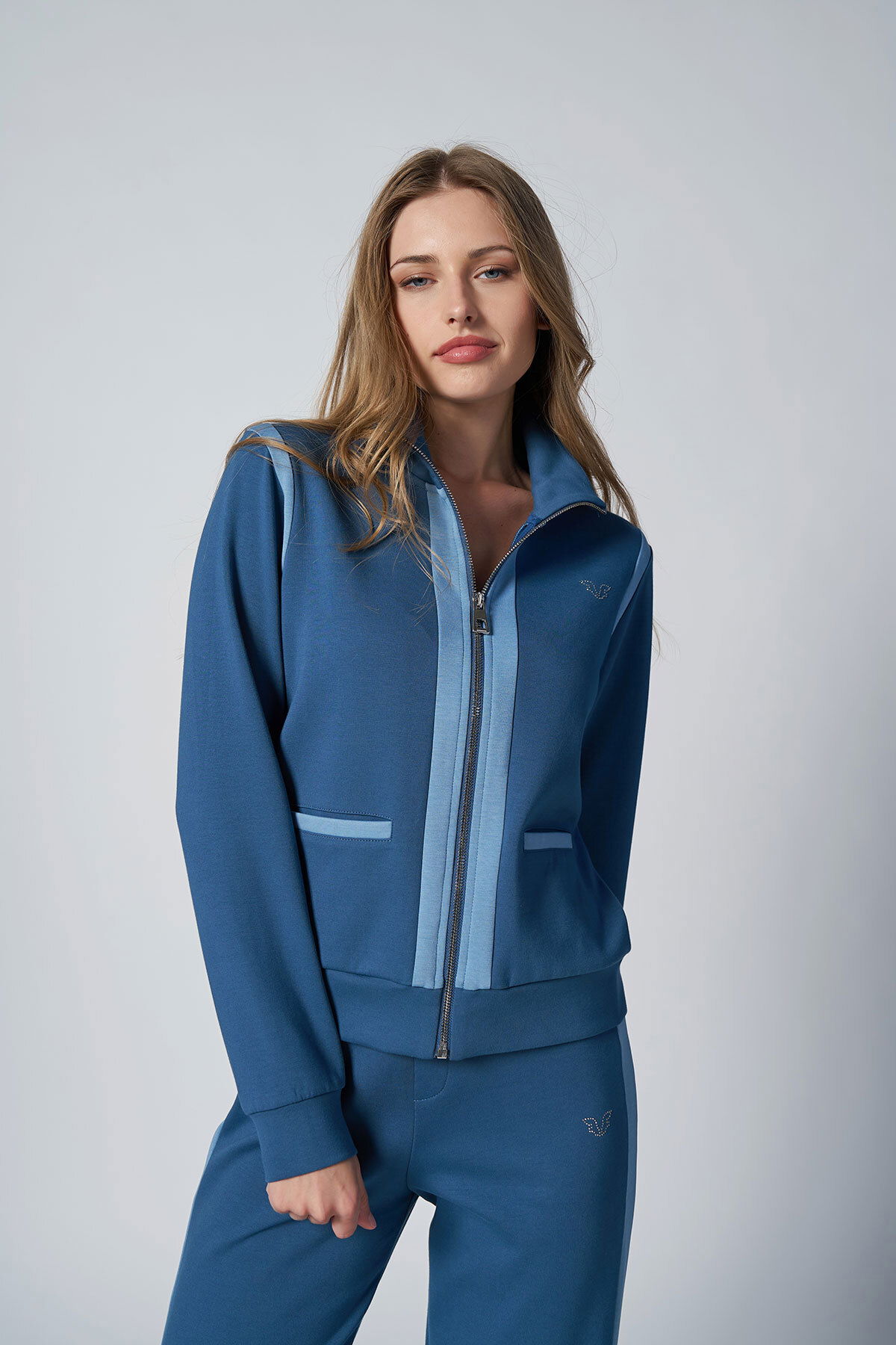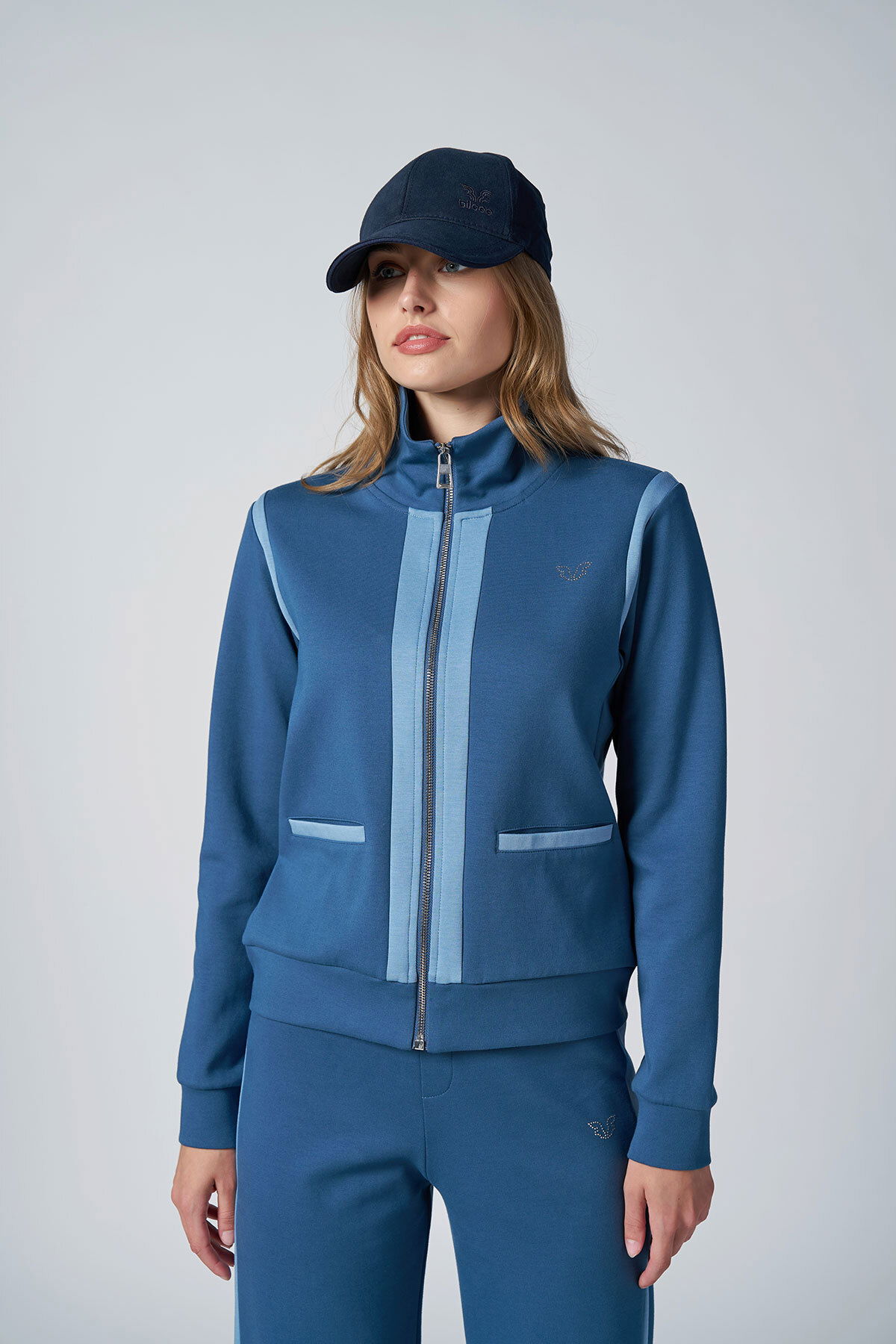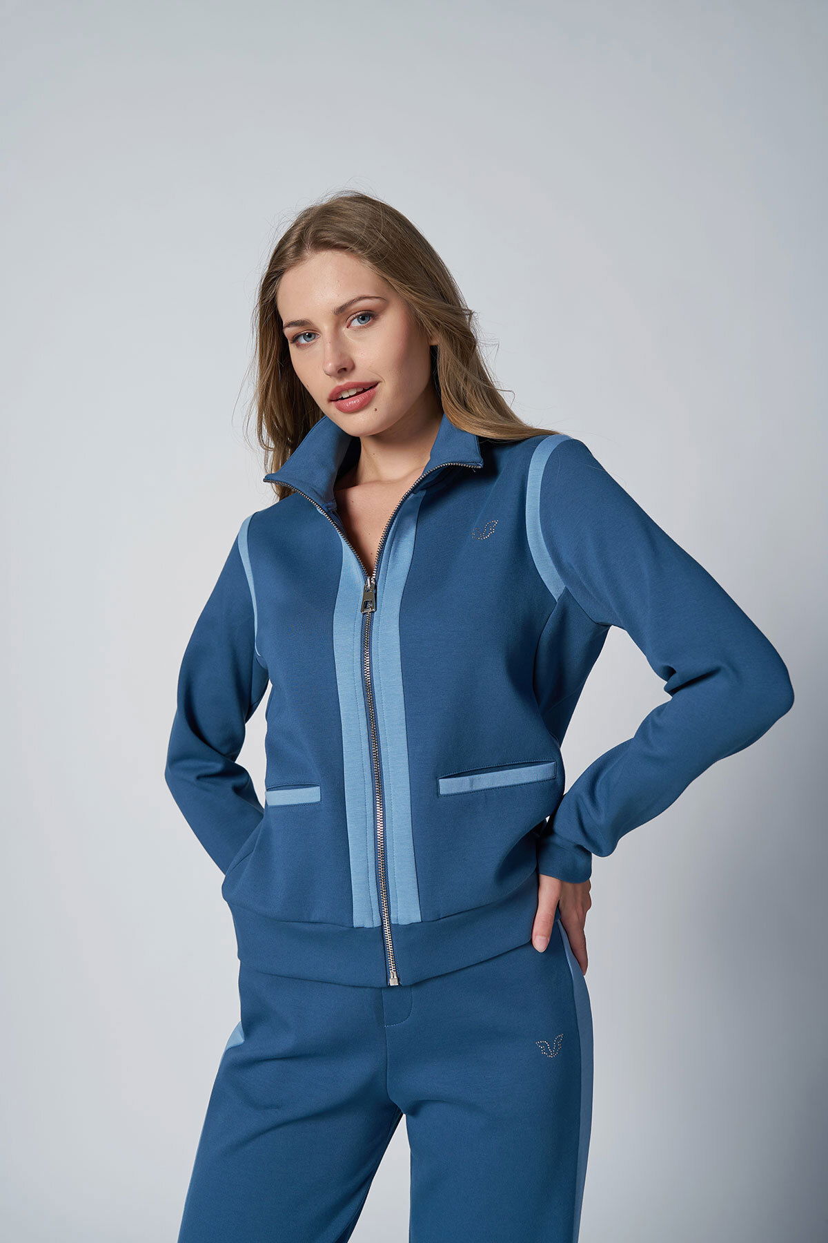 Kadın Koyu Mavi Fashıon Dik Yakalı Eşofman Takım |4562