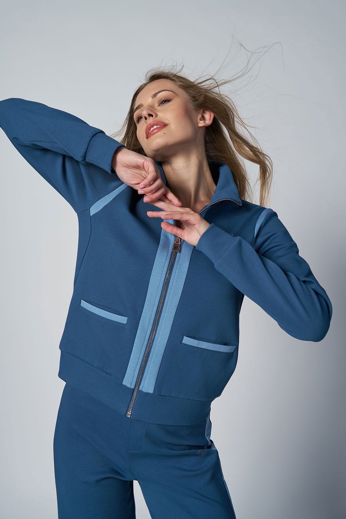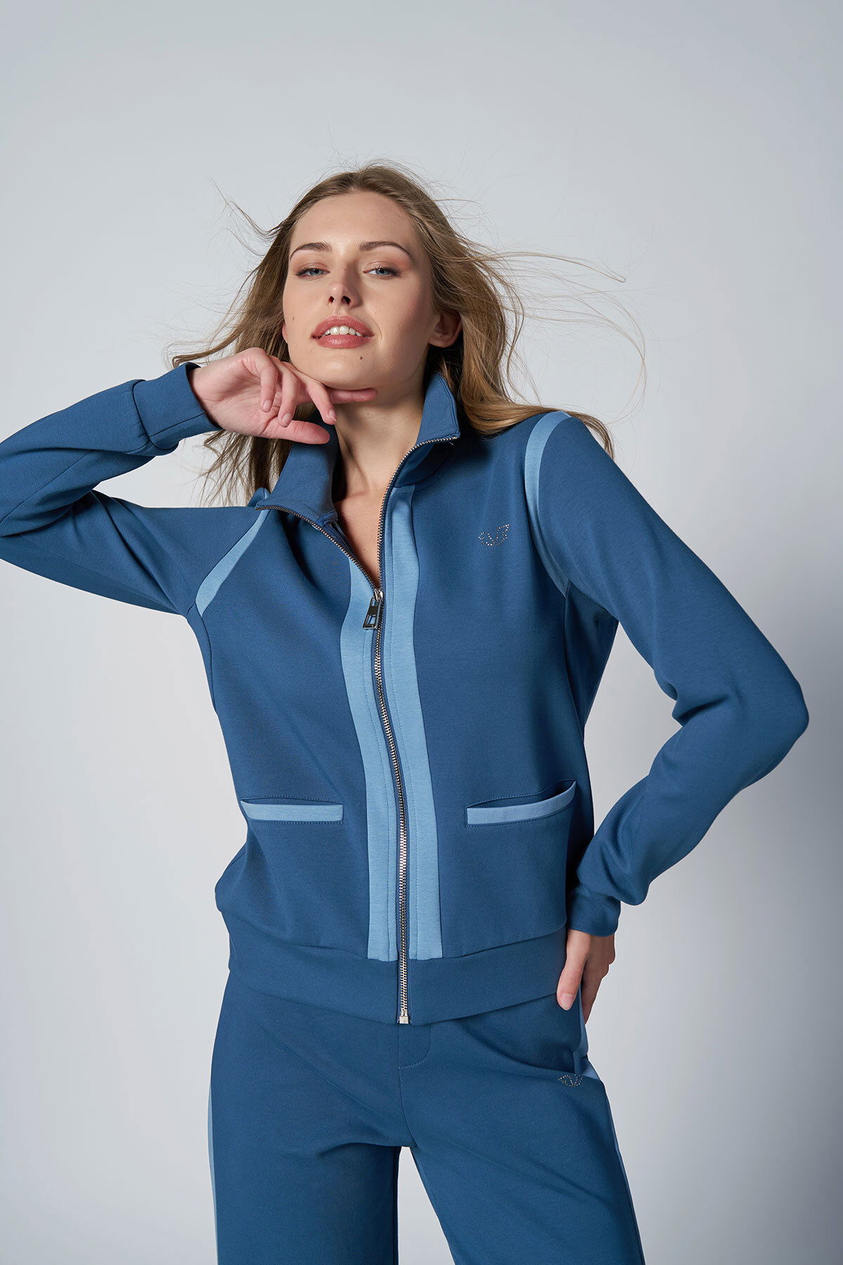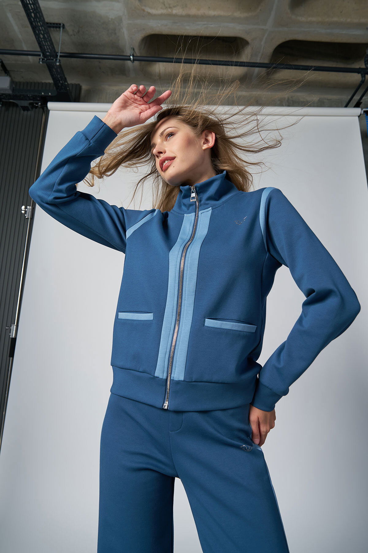 Kadın Koyu Mavi Fashıon Dik Yakalı Eşofman Takım |4562
