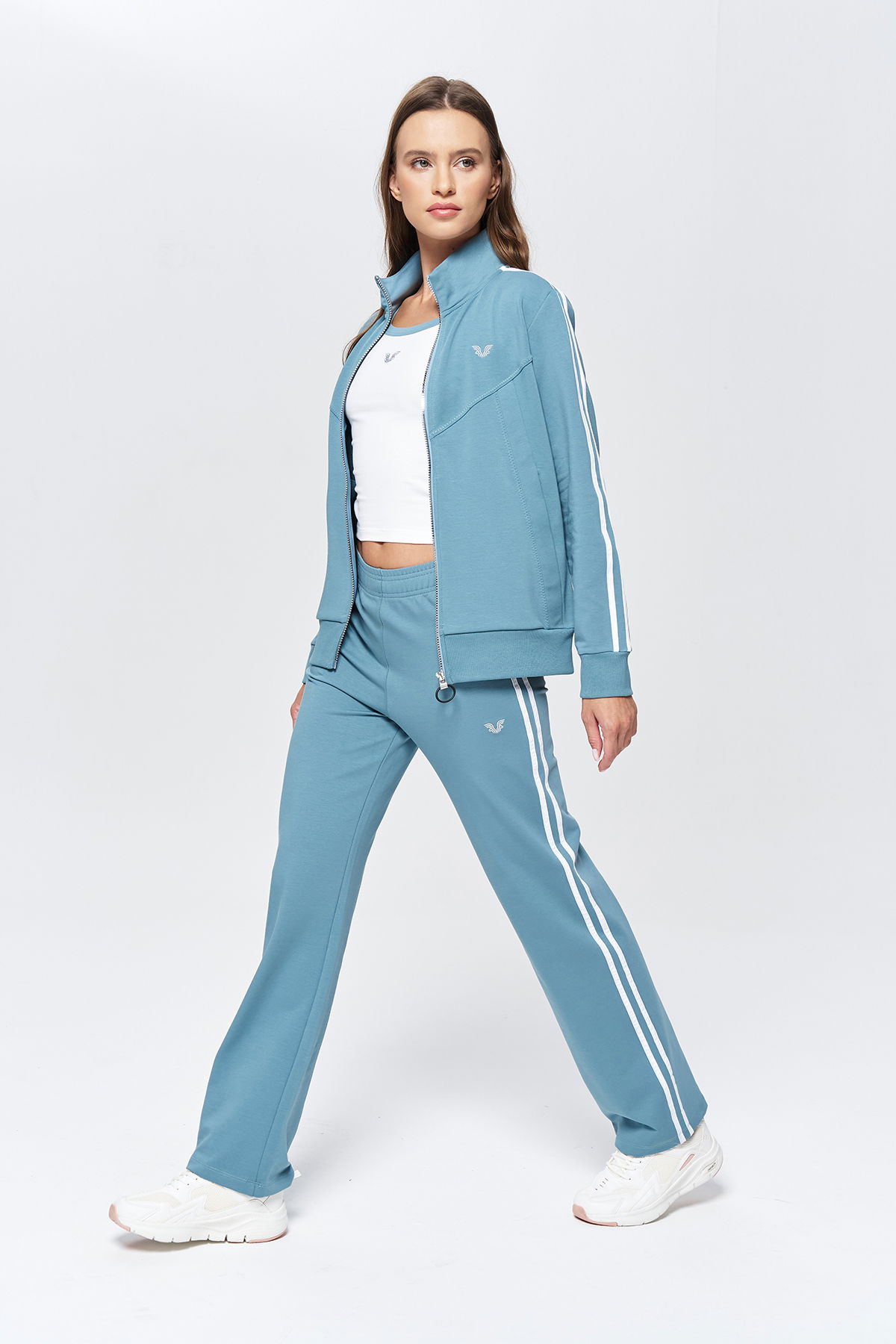 Kadın Mavi Dik Yakalı 3'lü Alt Üst Eşofman Takımı | 9907