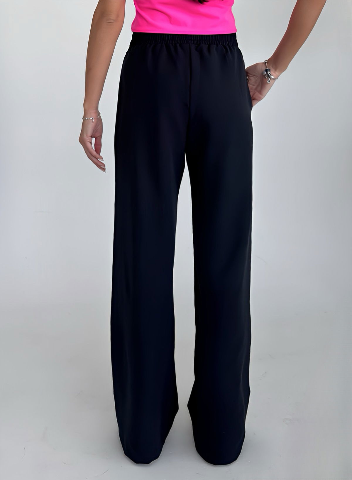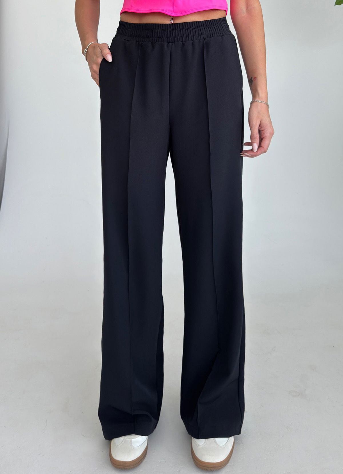 Kadın Siyah Yüksek Bel Nervürlü Bol Kumaş Pantolon 4591