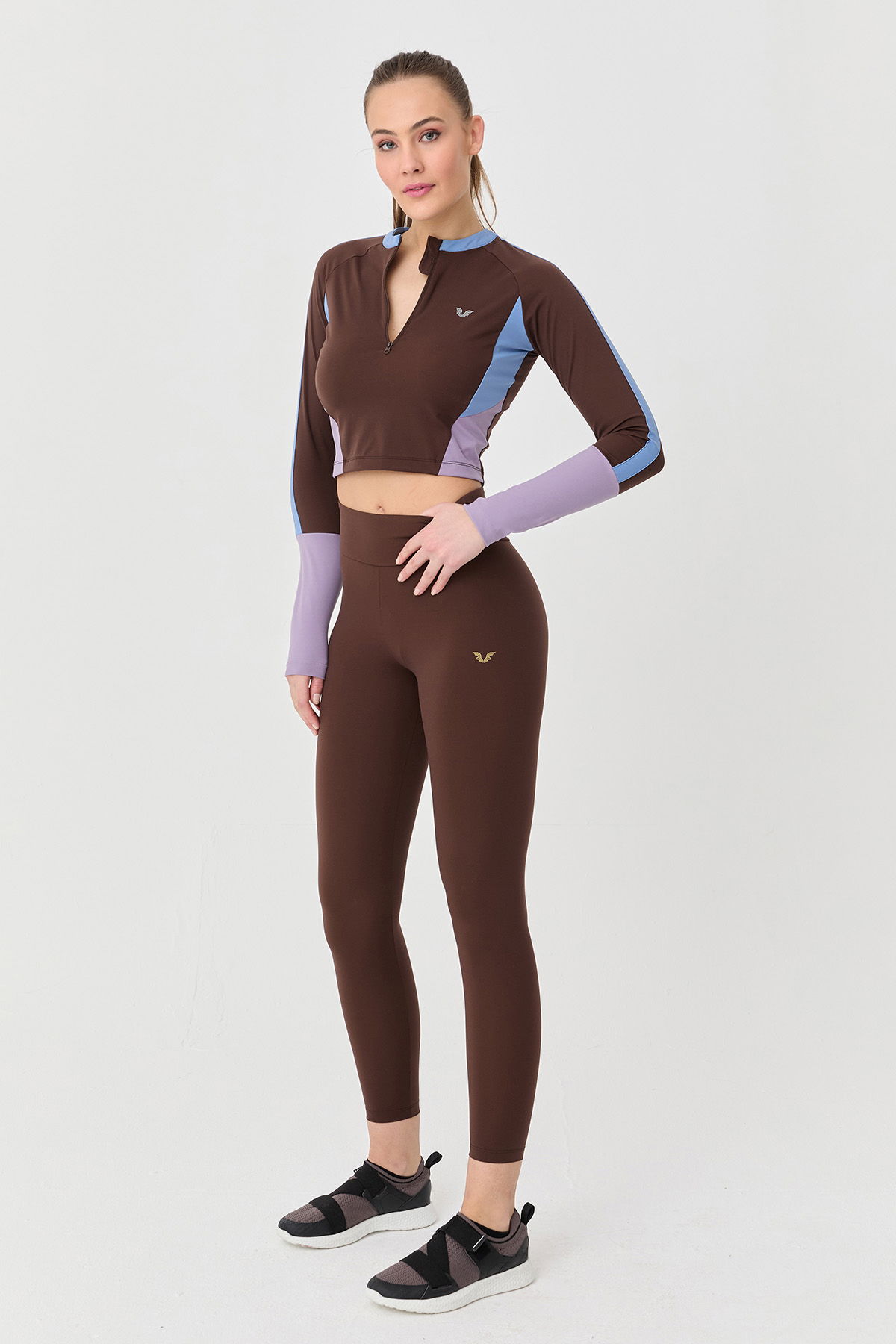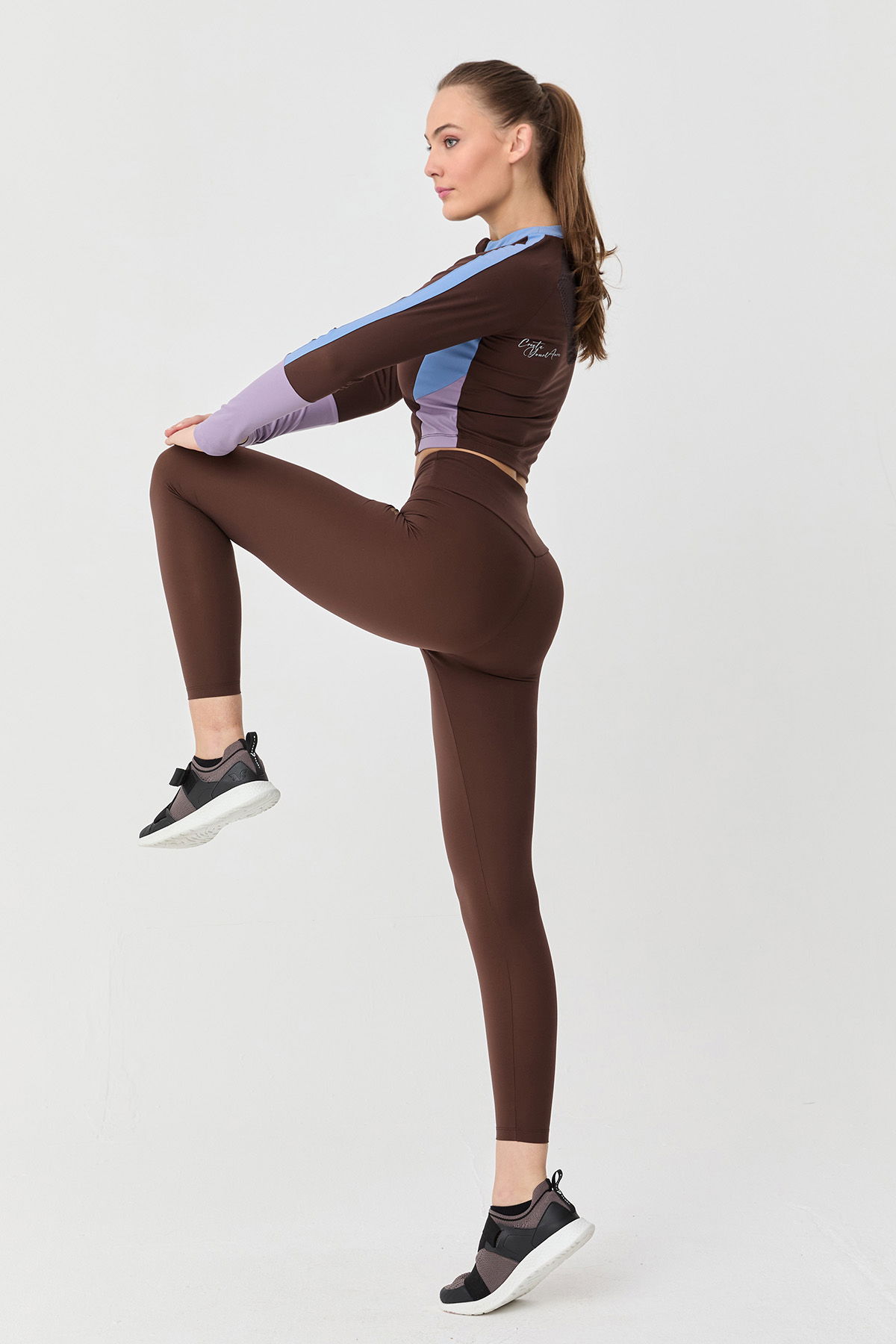 Kadın Kahve Yüksek Bel Toparlayıcı Full Likralı Sporcu Taytı | 9729