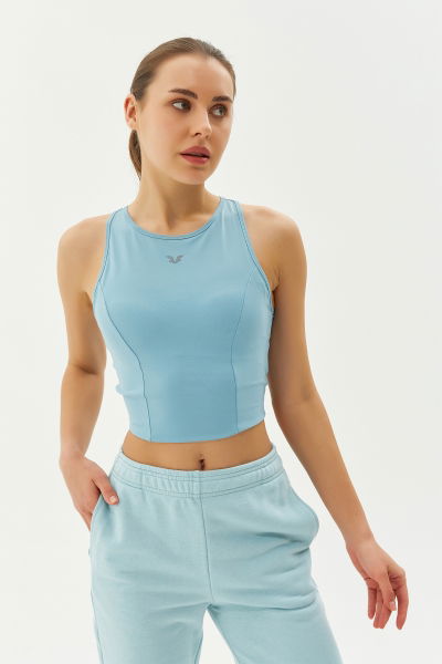 Kadın Mavi Bisiklet Yaka Toparlayıcı Destekli Spor ve Günlük Destekli Crop Top Body Bra | 9209
