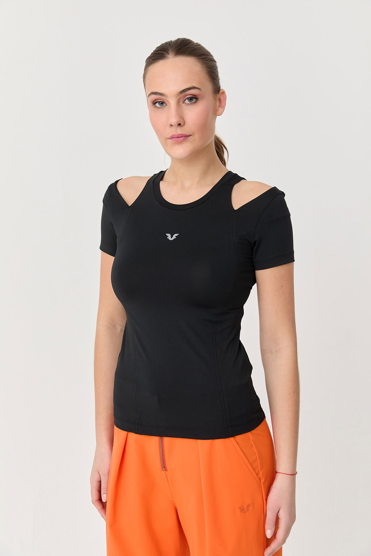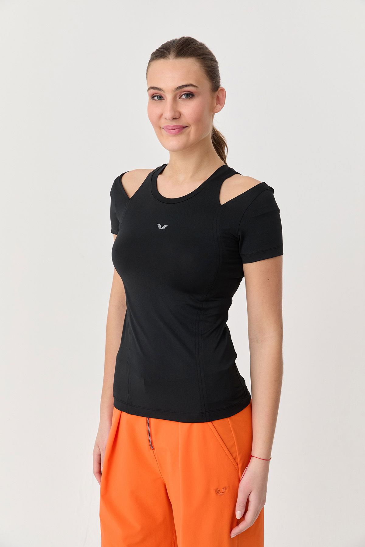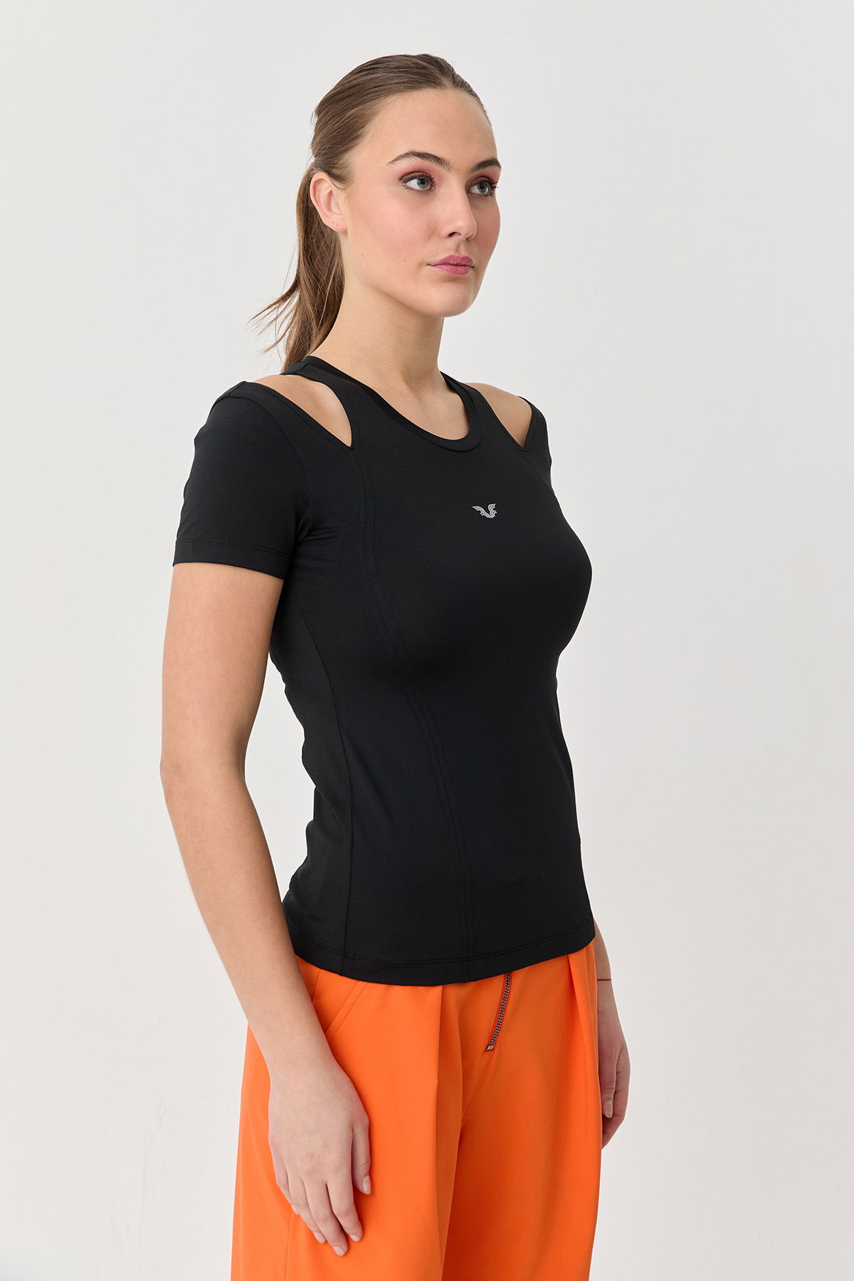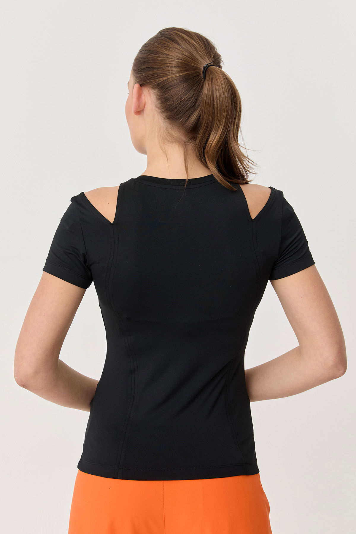 Kadın Siyah Omuz Detaylı Yumuşak Dokulu Body Tişört 9723