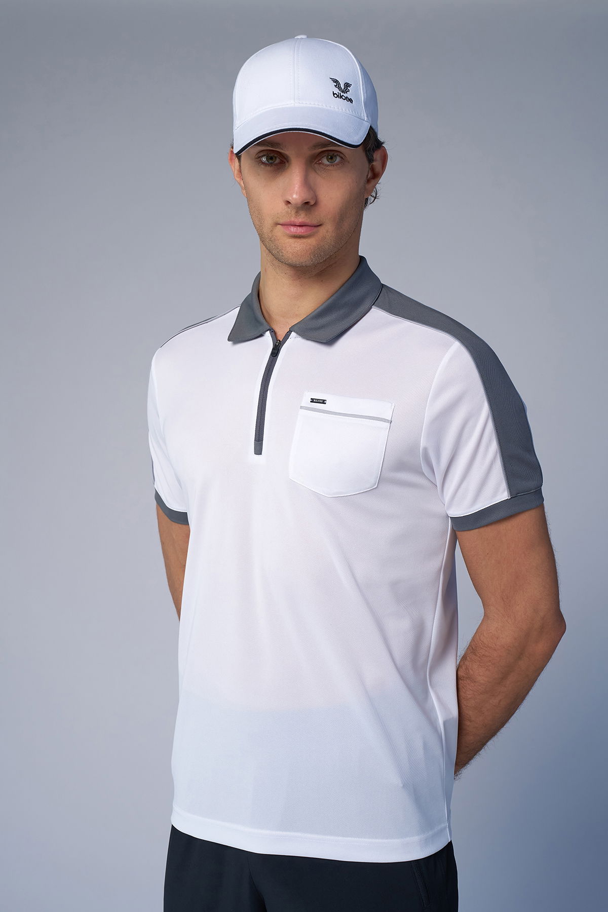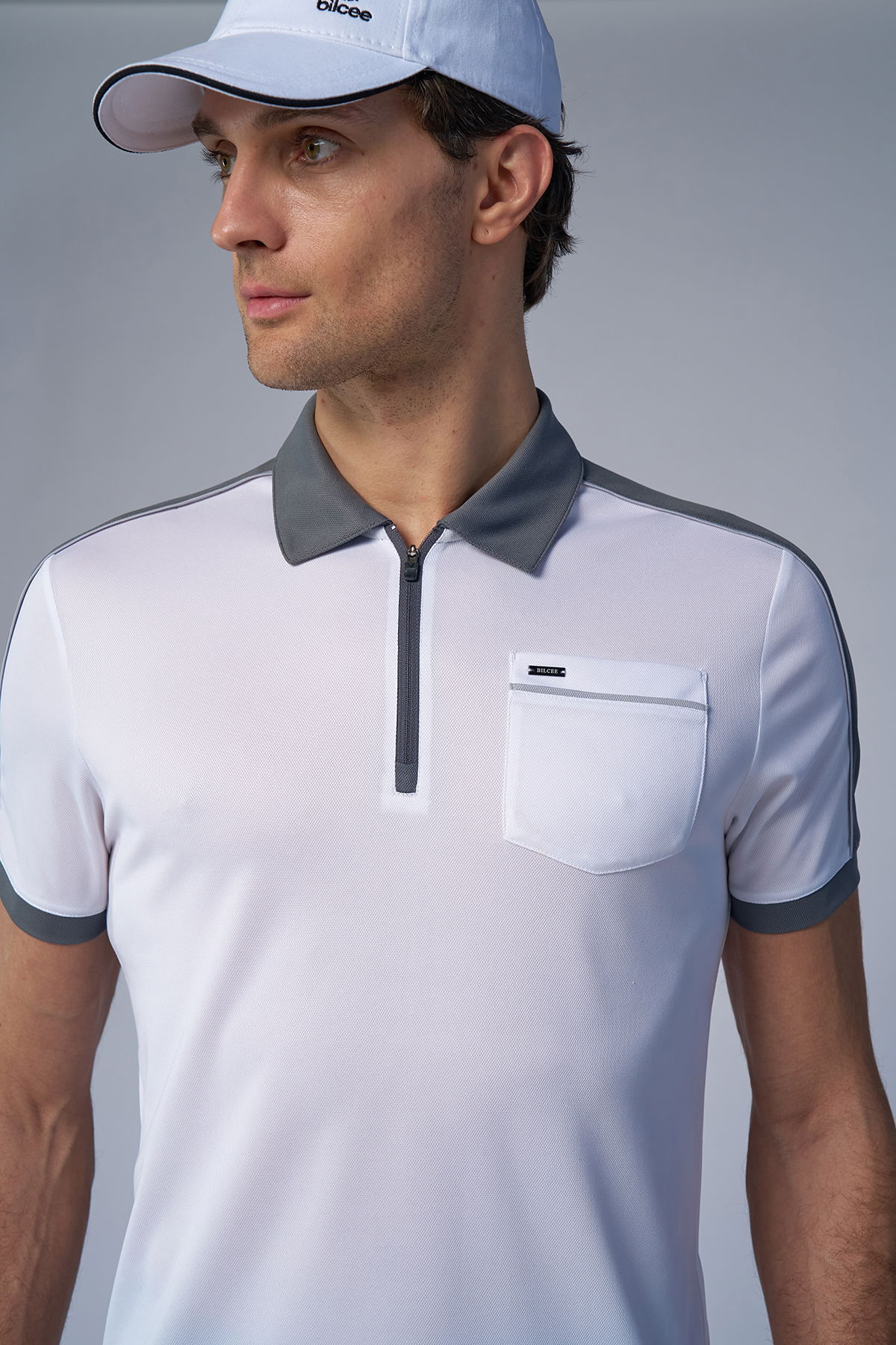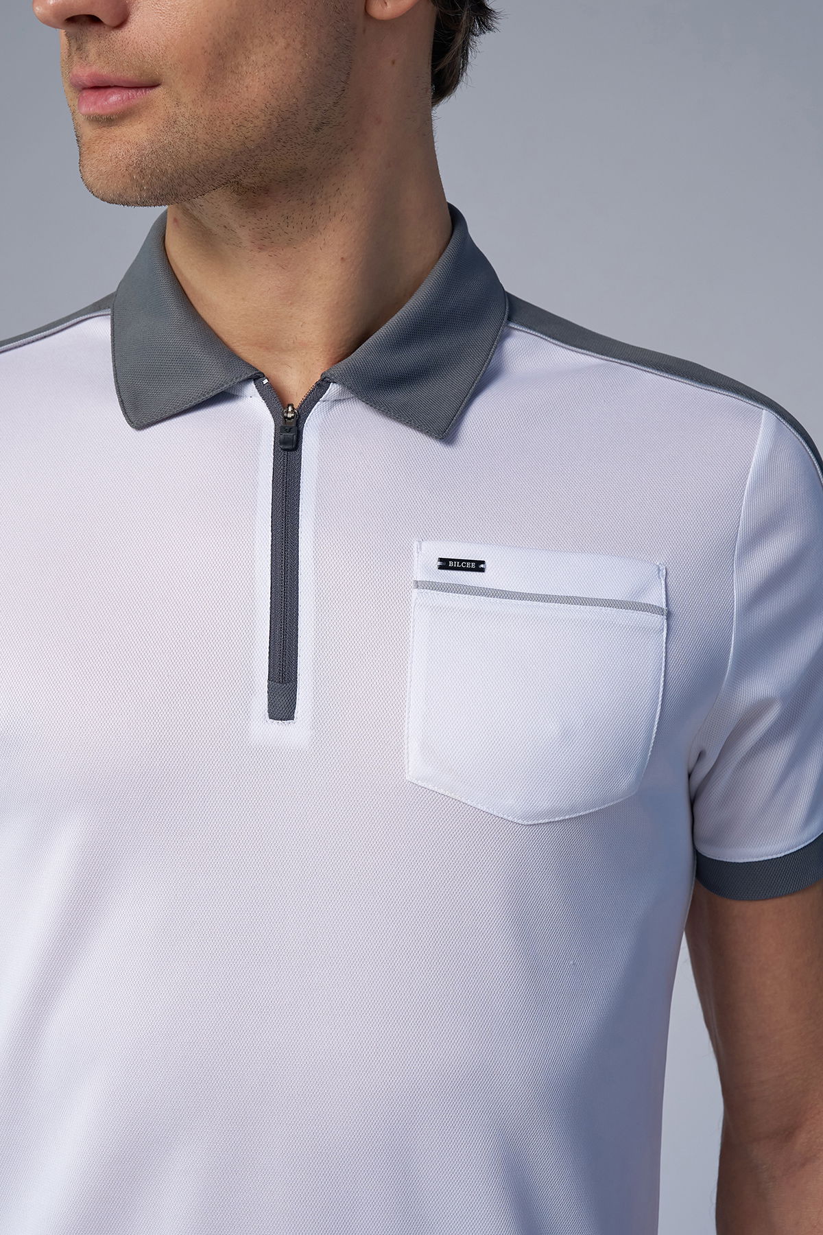 Erkek Beyaz Açık Gri Polo Yaka Tişört | 4193