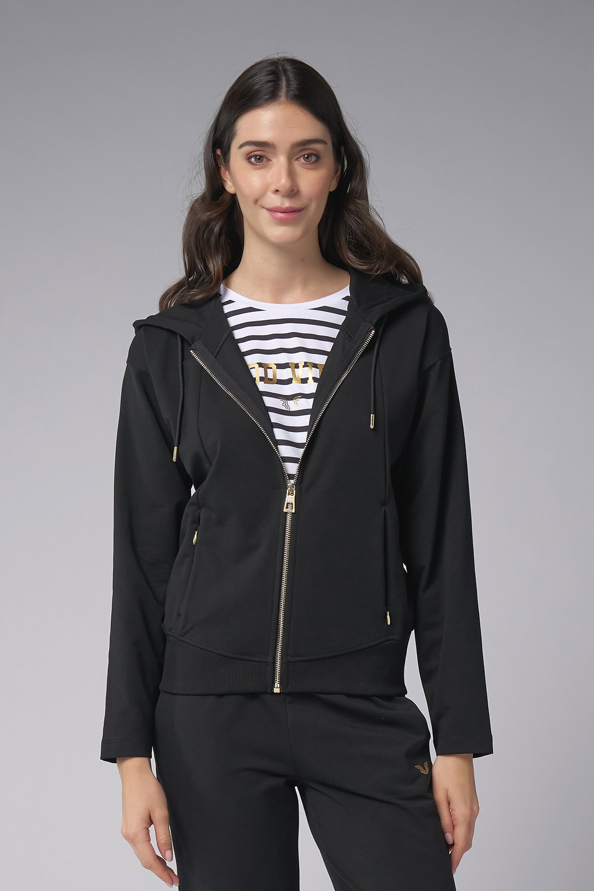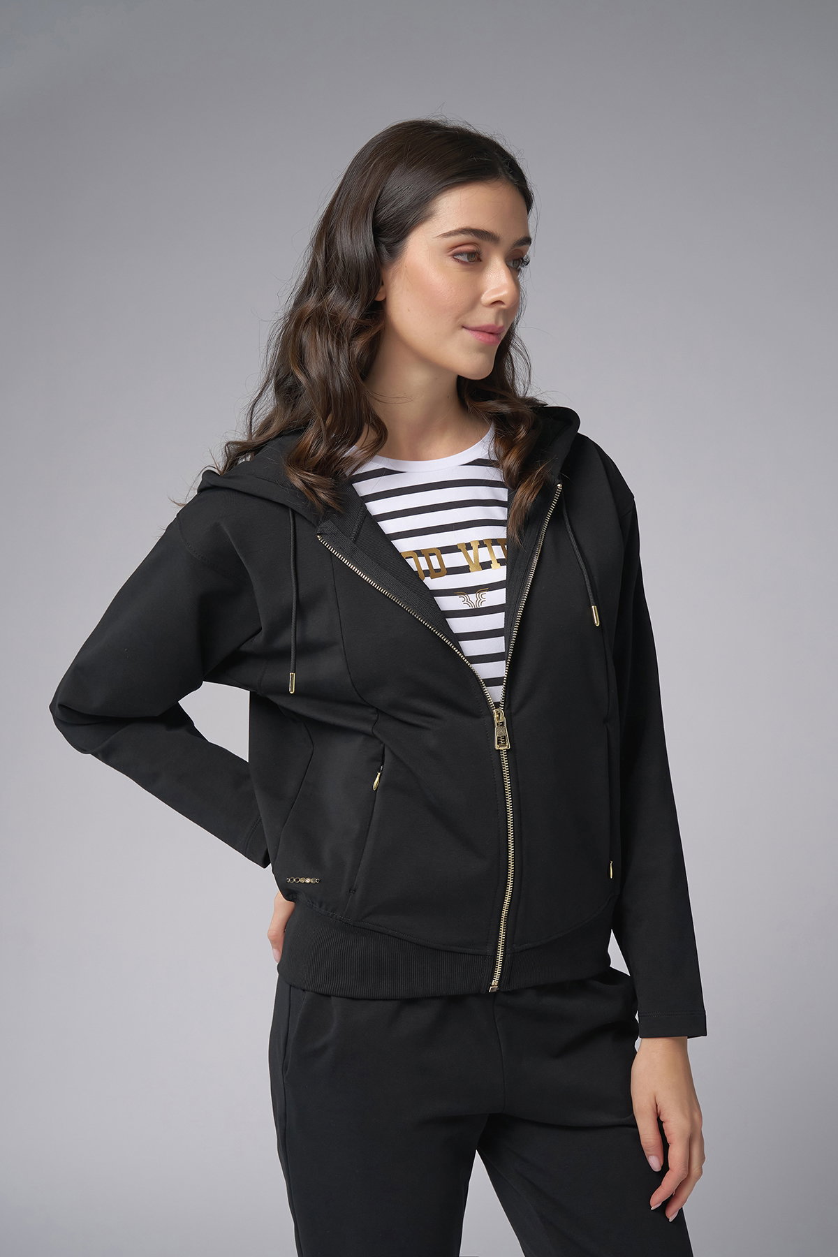 Kadın Siyah Kapüşonlu 3'lü Eşofman Takımı | 4006