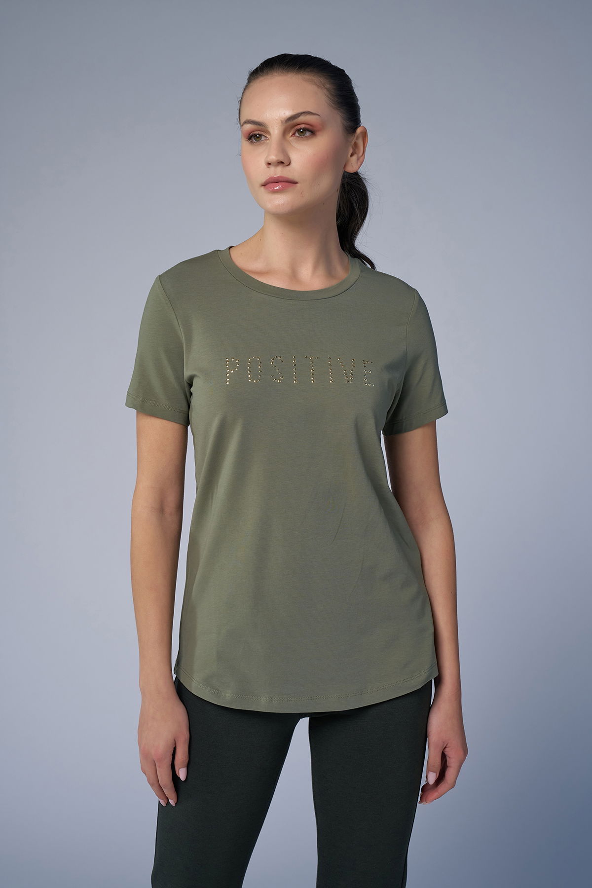 Kadın Yeşil Geometrik Droplu Tişört | 4176